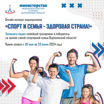 Приглашаем семьи Воронежской области принять участие в онлайн-конкурсе видеороликов «Спорт и семья – здоровая страна!». Для участия в конкурсе необходимо: