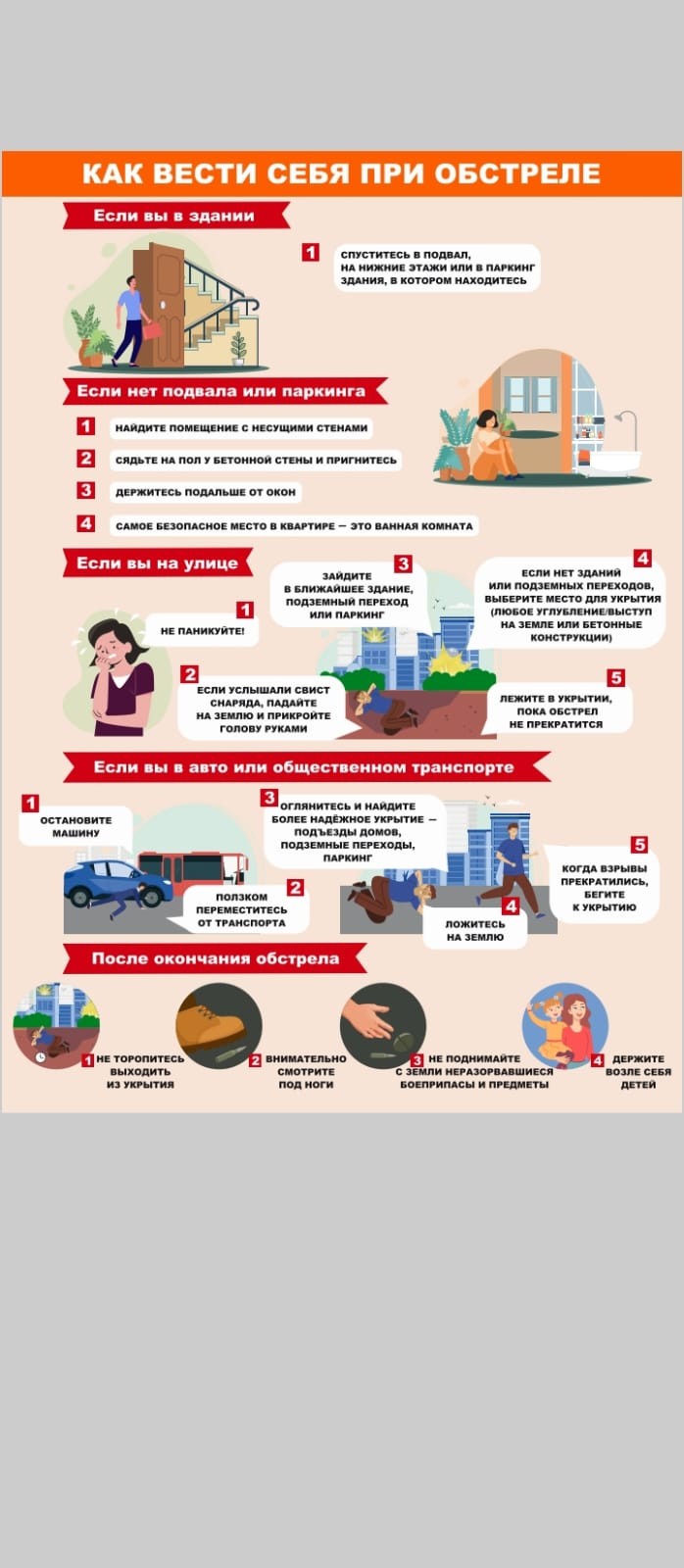 Департамент гражданской обороны и защиты населения создал памятку , как вести себя во время обстрела!!!! Будьте аккуратны и внимательно изучите технику поведения при ЧС!!!!